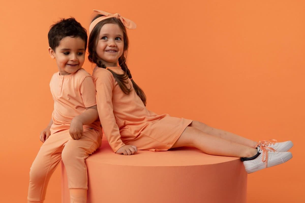 Both boys and girls look great in apricot. These mono looks are simply adorable. Perfect for sunny days, and since they evoke positive emotions, they can even add energy during cooler times.